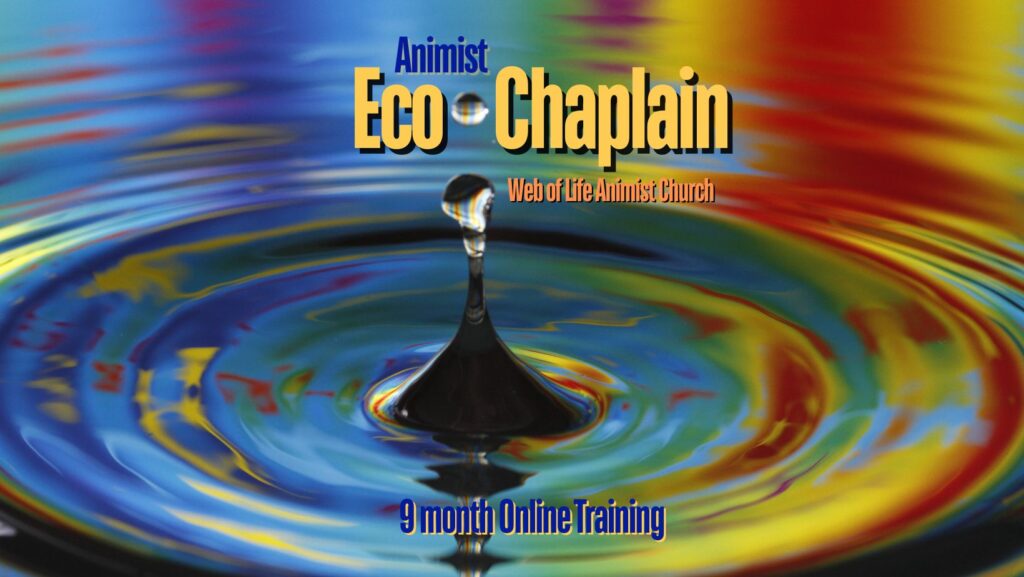 This Eco-Chaplain training is free for those in Web of Life Animist Ministry, Pastoral Counseling and/or Spirit Bridge training at this time, and is offered by Spirit Guided Donation for Ministers already ordained through Web of Life (or other church), Spirit Bridge practitioners and Earth loving friends of Web of Life Animists.Â
